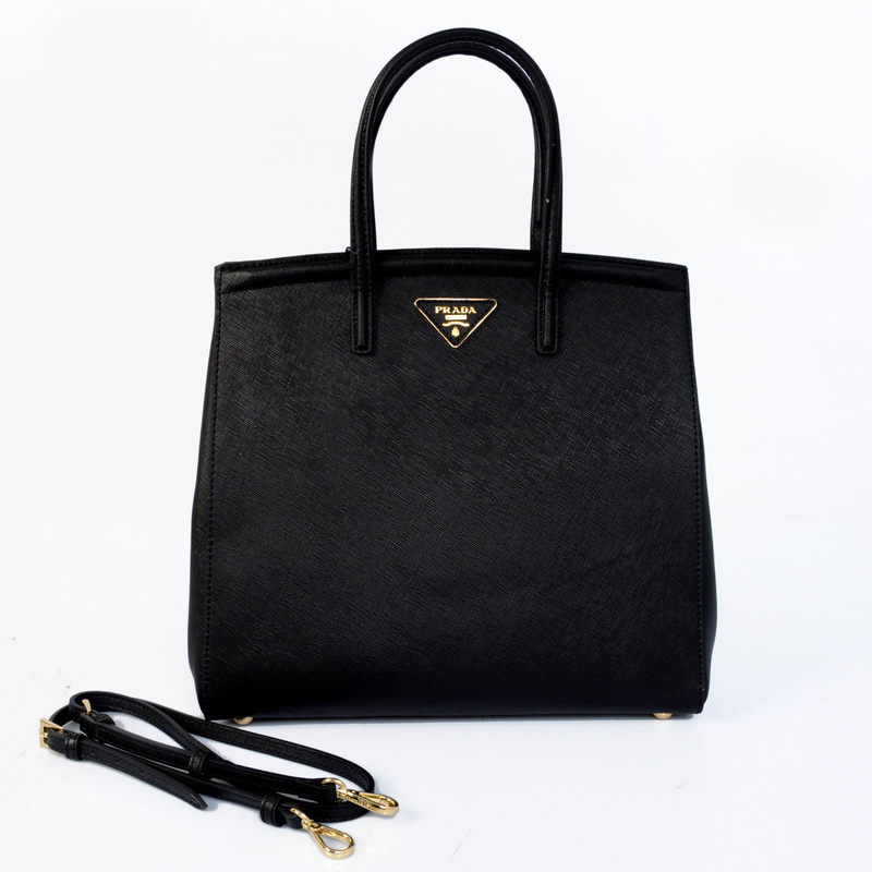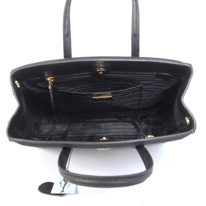 2013 Prada Saffiano Lux Tote Leather Handbag BR2404 in Black
