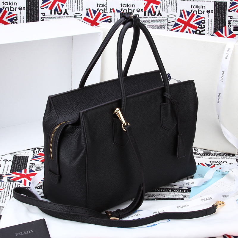 2014 PRADA Grainy Leather Tote Bag BN2767 Black