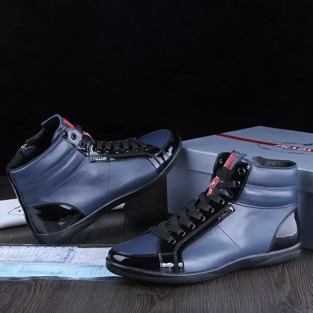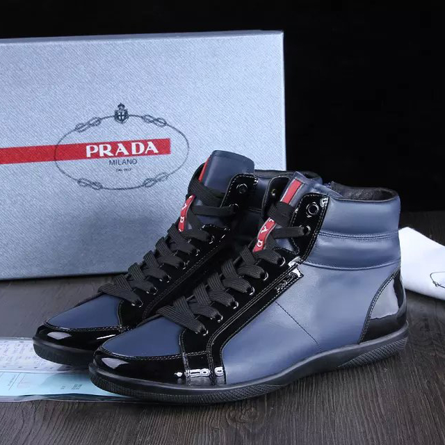 2015 Prada men Paint leather strap high-top casual shoes