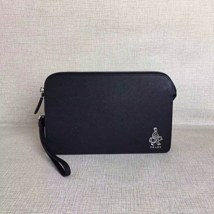 Prada Men's Clutch Come with serial numbers, Prada authenticity card, Prada dust bag, Prada Box and Prada care booklet.