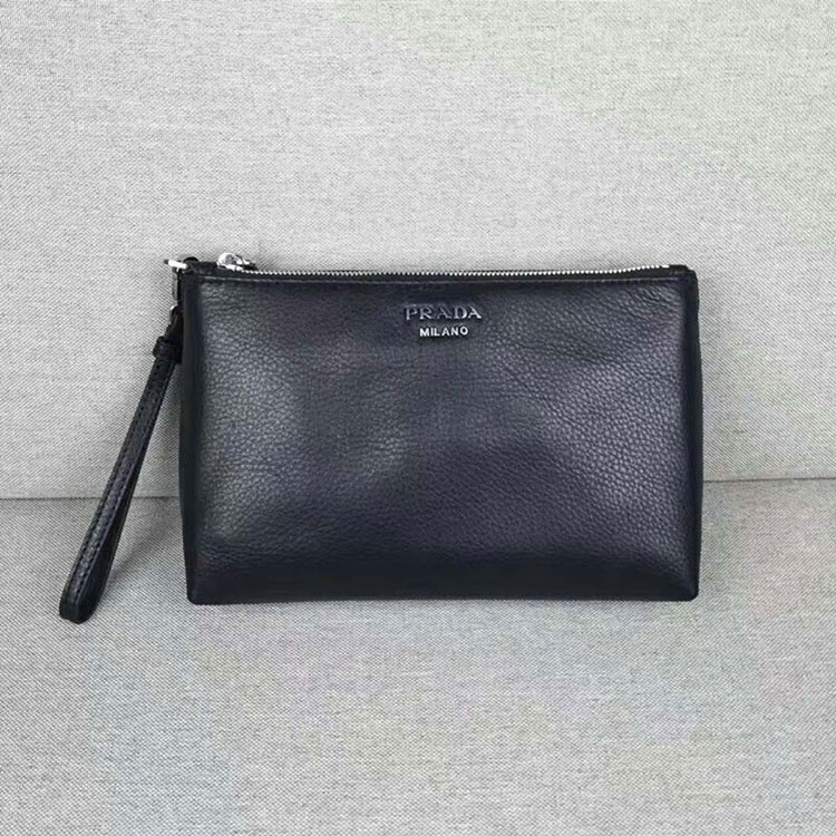 Prada Men Clutch bag Come with serial numbers, Prada authenticity card, Prada dust bag, Prada Box and Prada care booklet.