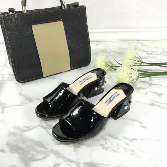 2018 Prada women Slippers in Patent leather Heel 5.5cm