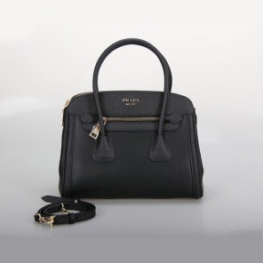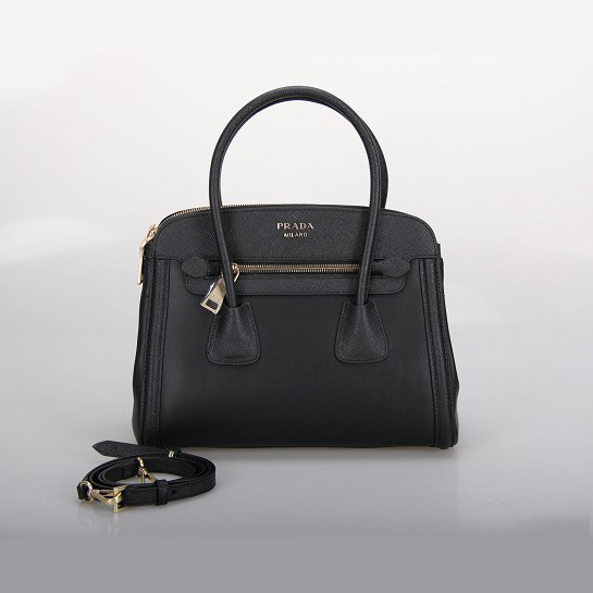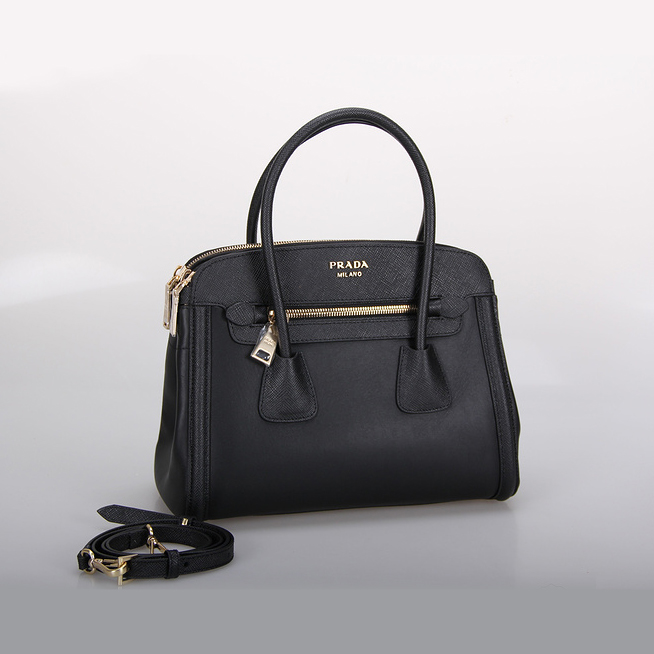 PRADA Saffiano Cuir and City Calf Leather Tote Bag BN2596 in Black
