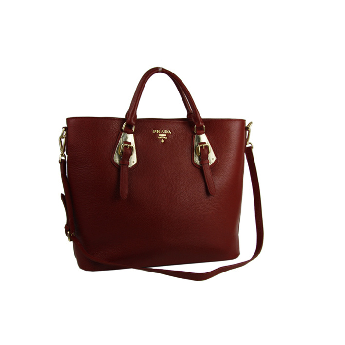 Prada BN1902 Original Calf Leather Tote Bag in Red