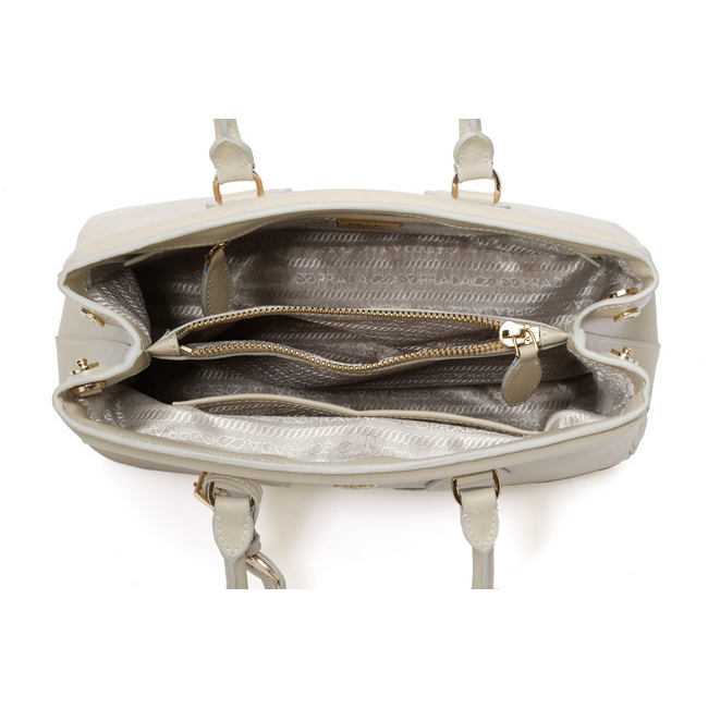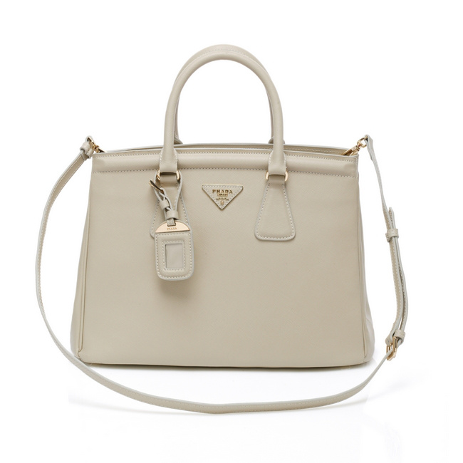 Prada Bluette Saffiano Leather Lux Handbag BN2402 in Offwhite
