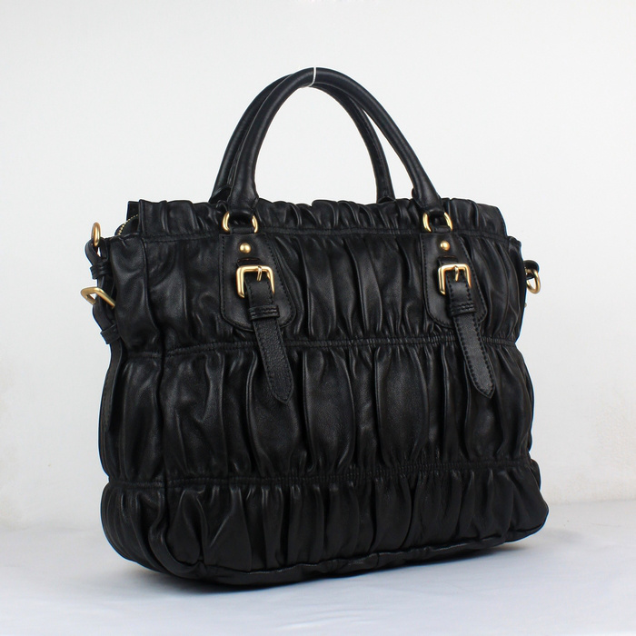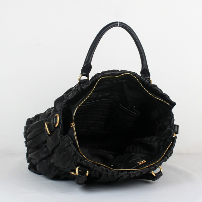 Prada Gaufre Fabric Top Handle Bag in Black
