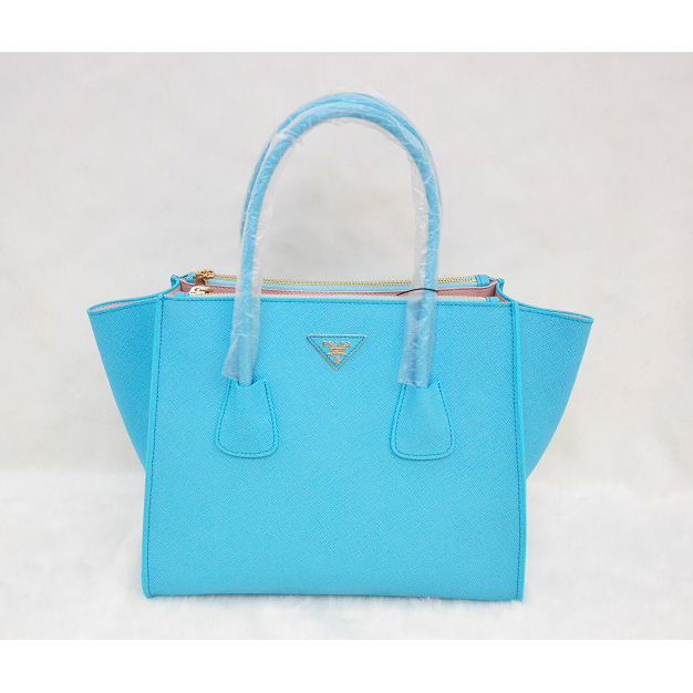 Prada Glace Calf Leather Tote Bag BN2619 in Lake blue
