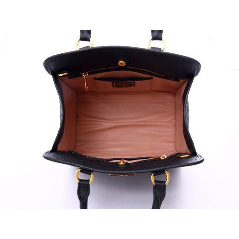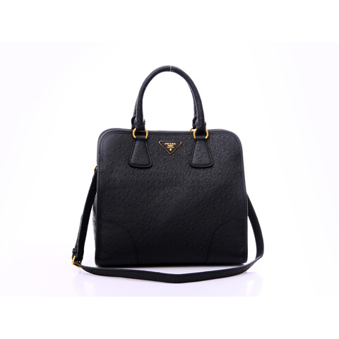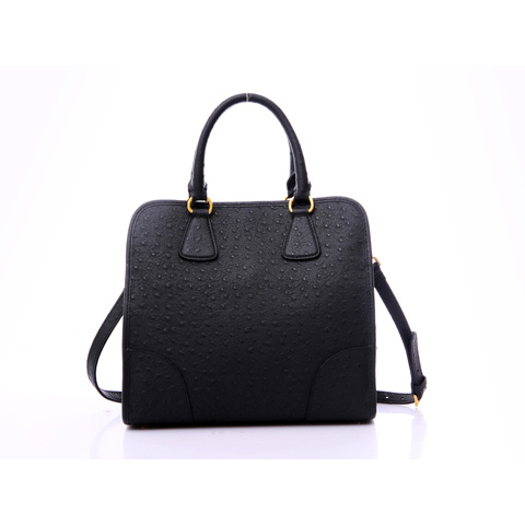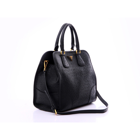 Prada Ostrich stripes Leather Tote Bag BN2254 in Black