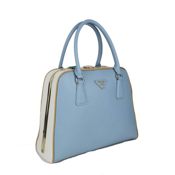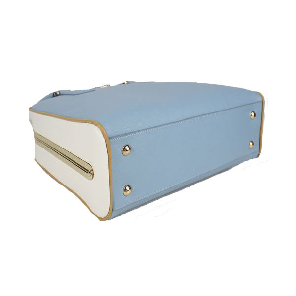 Prada Saffiano Leather Medium Tote Bag BL5018 Blue&White