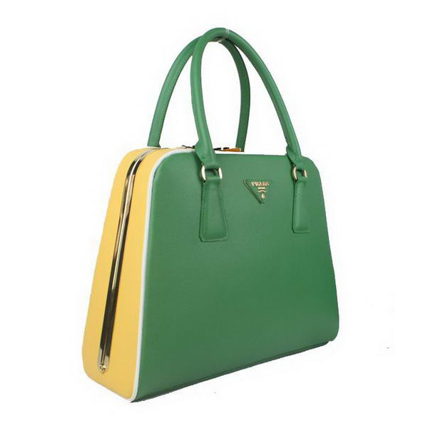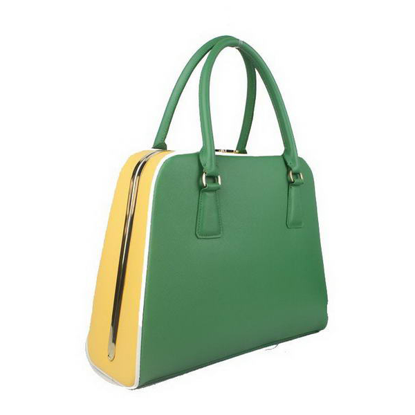 Prada Saffiano Leather Medium Tote Bag BL5018 Green&Yellow