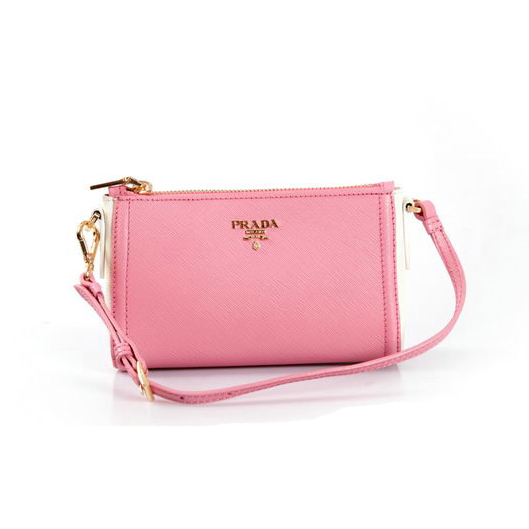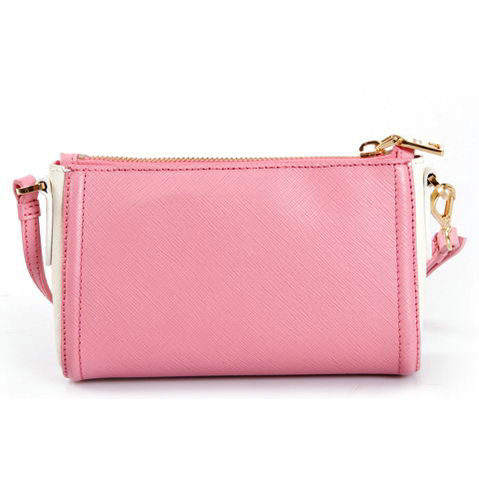 Prada Saffiano Small Shoulder Bag 1N1733 in Pink with White