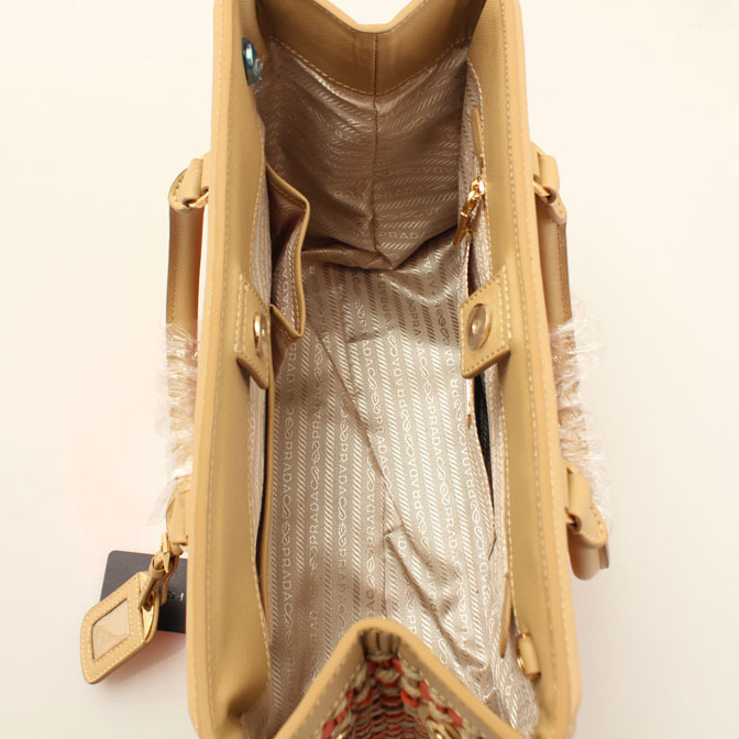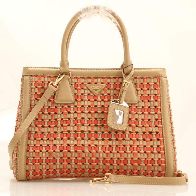 Prada Weave Leather Tote Bag BP6001 in Apricot with Orange