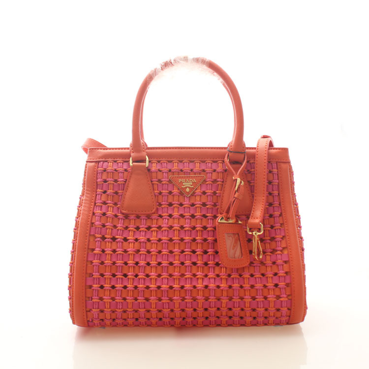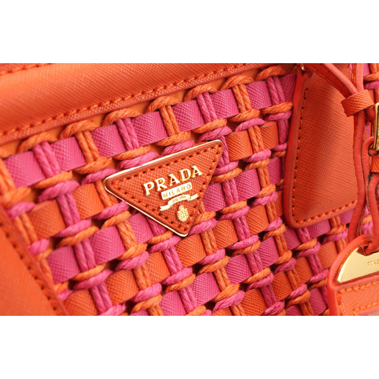 Prada Weave Leather Tote Bag BP6002 in Orange with Rose