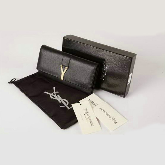Yves Saint Laurent Large Y Line Flap Wallet Black
