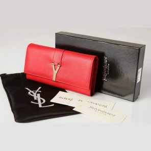 Yves Saint Laurent Large Y Line Flap Wallet Red
